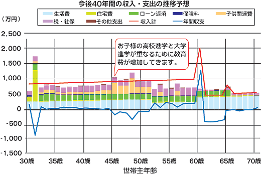 弊社では専用のソフトを使用し、ご家庭の収支状況のキャッシュフローを作成します。